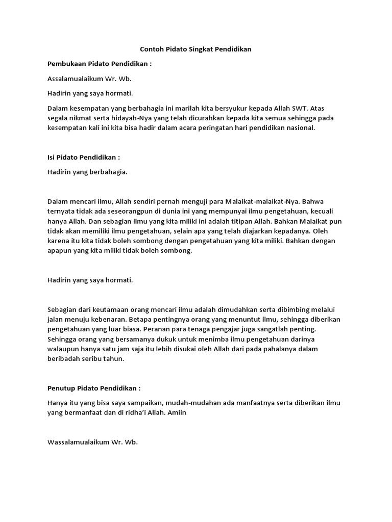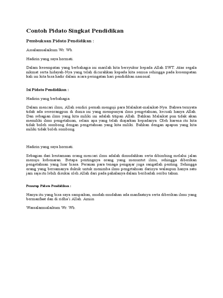 Banyak sekali cara yang dapat dilakukan untuk memperoleh ilmu agama baik secara langsung maupun online. 111 Contoh teks pidato singkat tentang pendidikan berkarakter bahasa indonesia. Contoh Teks Pidato Singkat Tentang Pendidikan Bahasa Indonesia.
