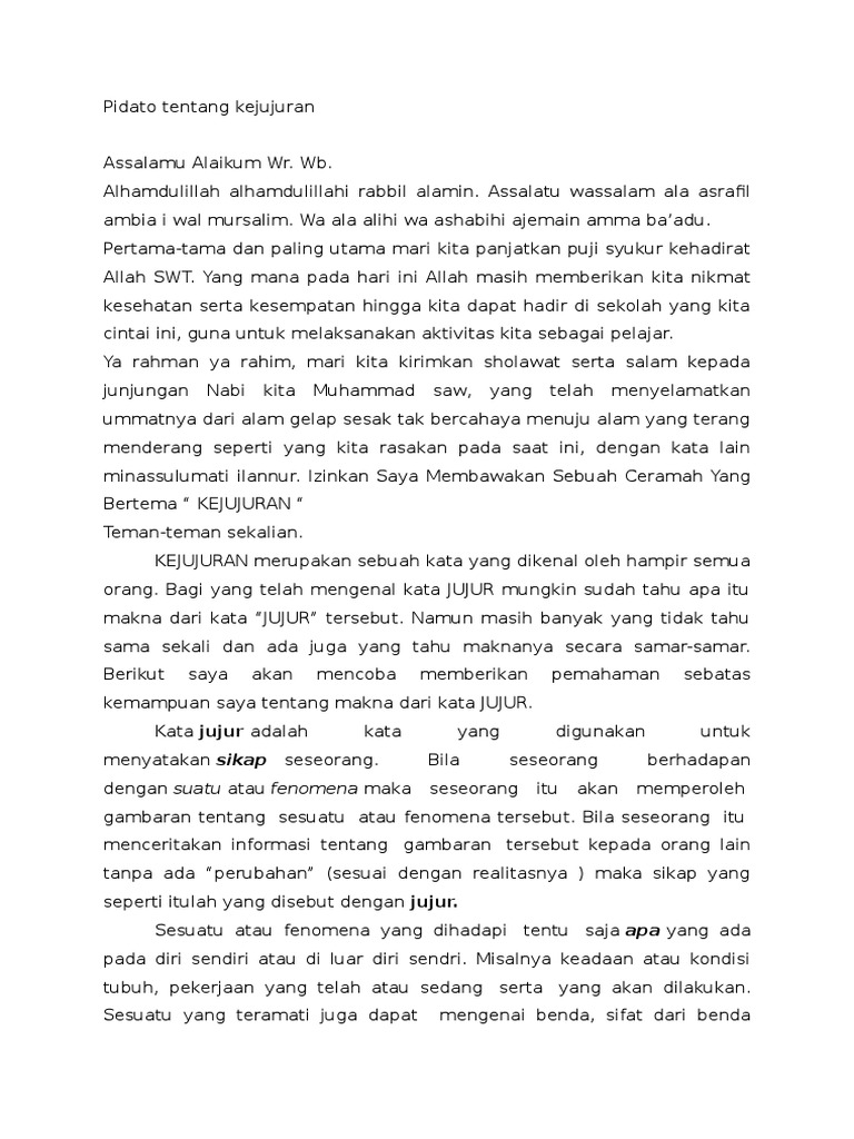Teks pidato singkat tentang jujur terbaru. Penutup Teks Pidato Agama Islam Tentang Kejujuran Hadirin mungkin itu saja yang bisa sampaikan. Contoh Dakwah Tentang Kejujuran.
