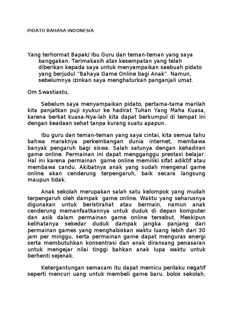 Pidato Tentang Bahaya Game Online Contohnya Dimana Dibantu Ya Brainly Co Id