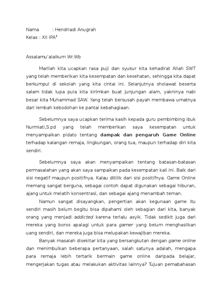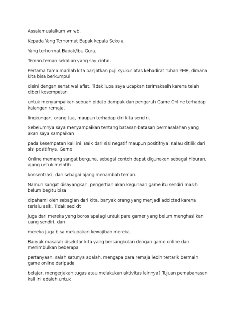 Dampak positif dari game online Apakah teman-teman tau tentang game online. Hadirin yang saya hormati. Contoh Pidato Tema Literasi.