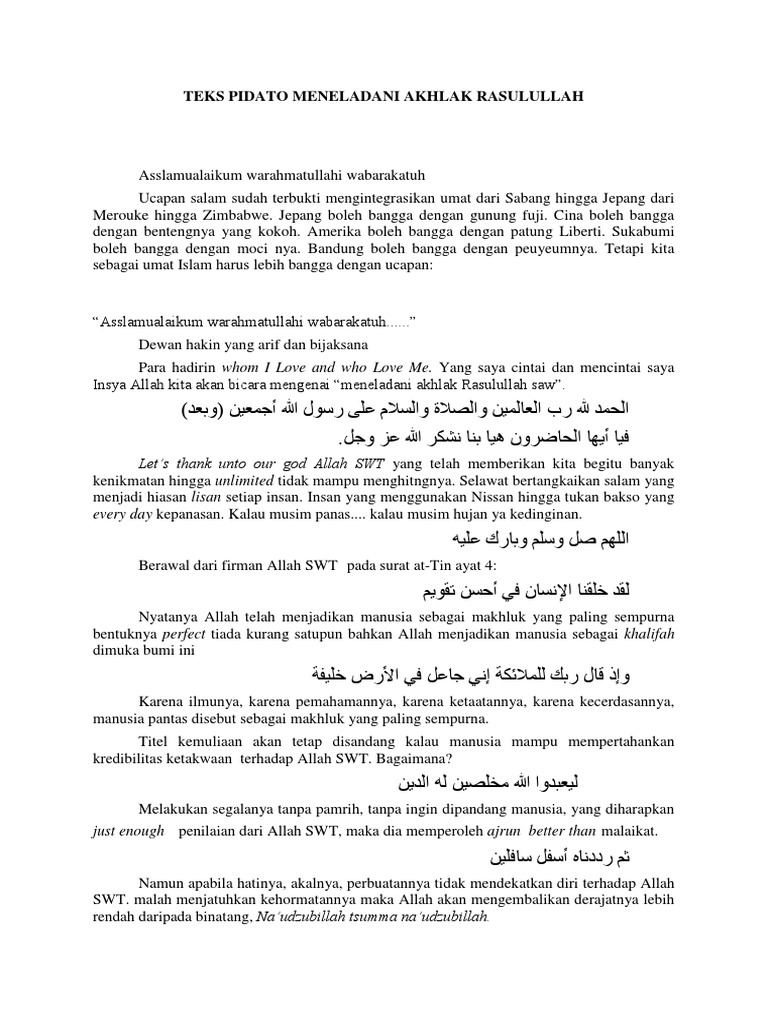 Teks ceramah agama tentang akhlak terbaru. Muhammad Rasulullah merupakan nabi akhir zaman yang diberikan kemukjizatan yang sangat luar biasa yaitu kitab Al-Quran yang kita gunakan sebagai petunjuk hidup dan sebagai kitab suci umat Islam. Admin blog Berbagai Teks Penting 2019 juga mengumpulkan gambar-gambar lainnya terkait teks ceramah singkat tentang akhlak terpuji dibawah ini. Nabi Muhammad diutus ke bumi ini untuk berdakwah menyampaikan wahyu apa yang telah.