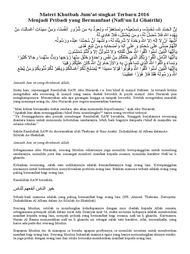 Contoh Materi Khutbah Jumat Singkat Terbaru Menjadi Pribadi Yang Bermanfaat Nafi Un Li Ghairihi