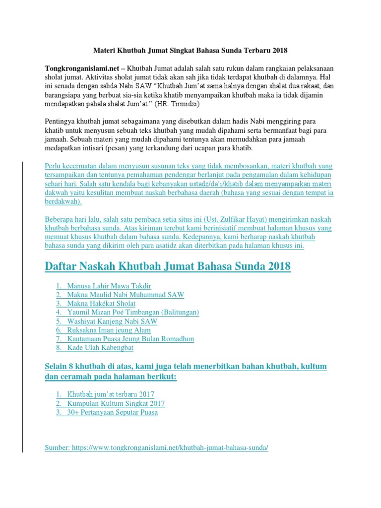 Materi Khutbah Jumat Singkat Bahasa Sunda Terbaru 2018