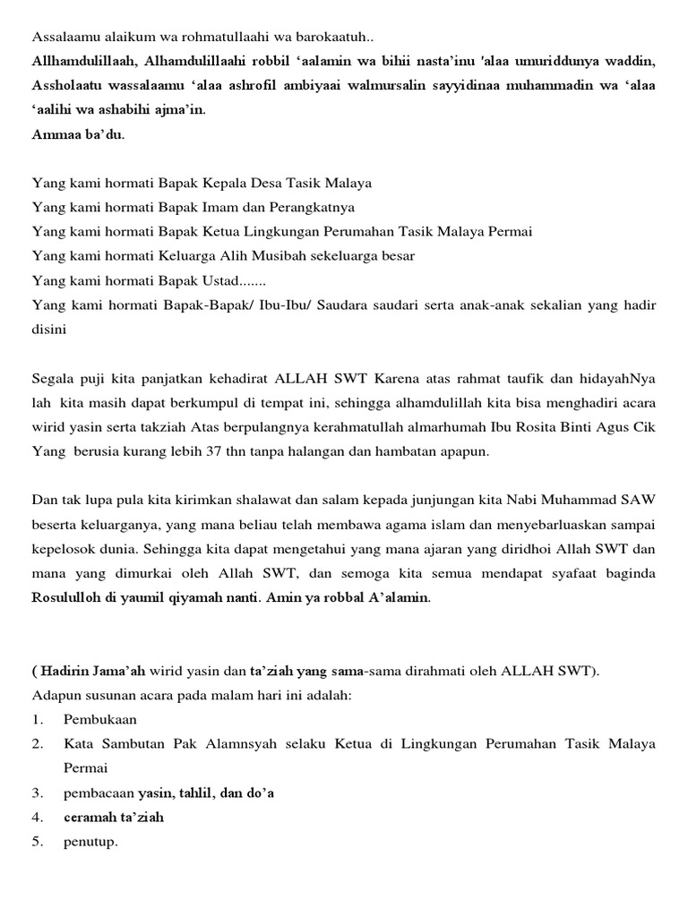 Contoh Naskah Sambutan Tuan Rumah Pada Acara Yasinan Nuroehi