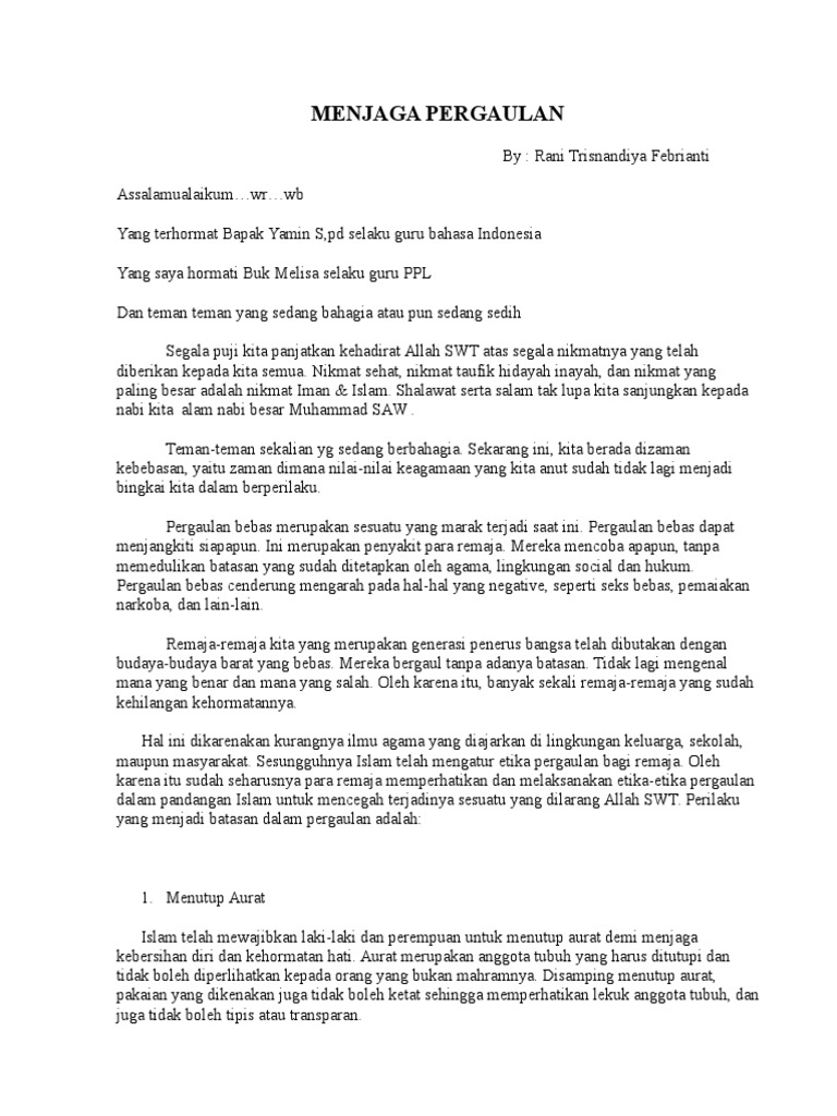Doc Teks Ceramah Agama Islam Tentang Pergaulan Bebas Bedjo Fotocopy Academia Edu