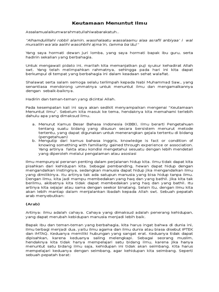 Pidato Bahasa Inggris Kewajiban Menuntut Ilmu Docx Document