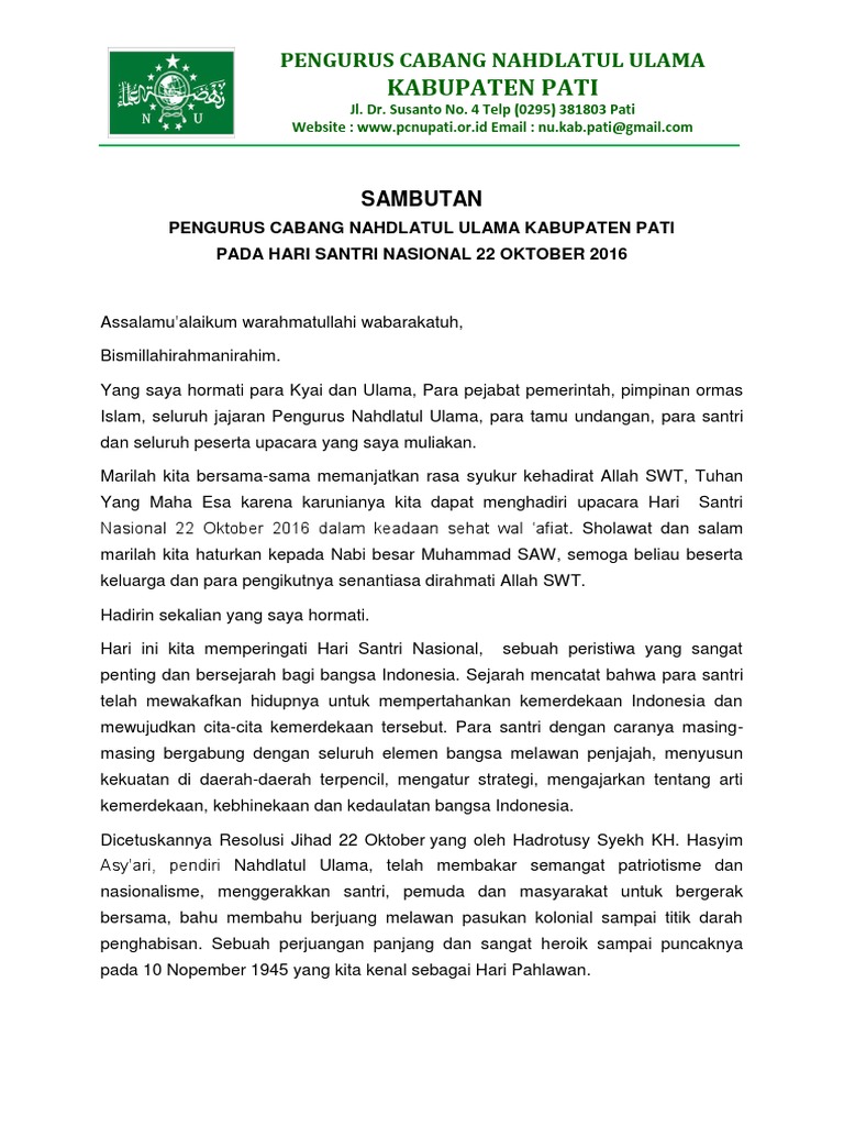Teks Pidato Tentang Hari Santri Kumpulan Contoh Terbaik Makalah Pedia