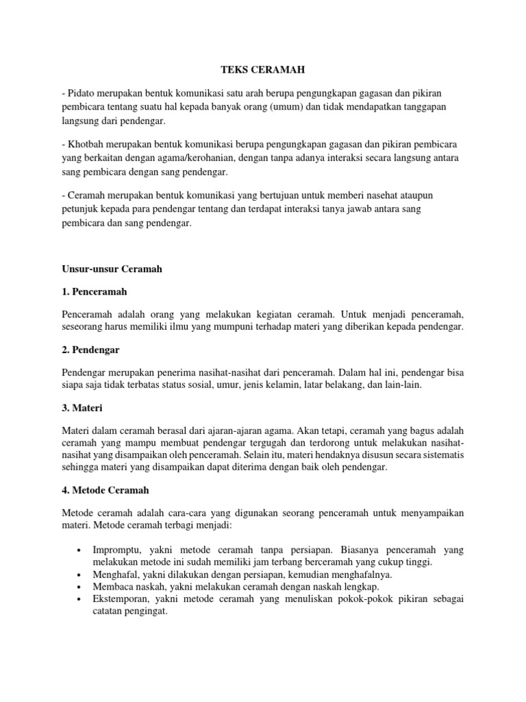 Teks Ceramah Pengertian Struktur Ciri Jenis Contohnya