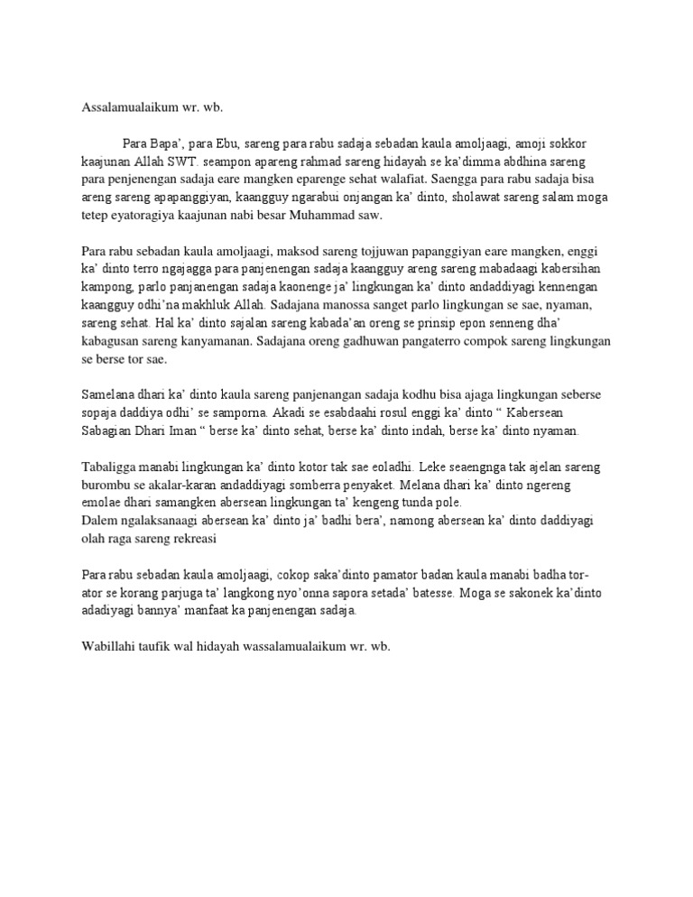 Contoh pidato bahasa madura terbaru. Contoh Pidato Bahasa Jawa atau Sesorah Kebersihan Lingkungan. Contoh pidato yaitu seperti pidato kenegaraan pidato menyambut hari besar pidato pembangkit semangat pidato sambutan acara atau event dan lain sebagainya. 13 contoh pembukaan pidato ketika upacara.