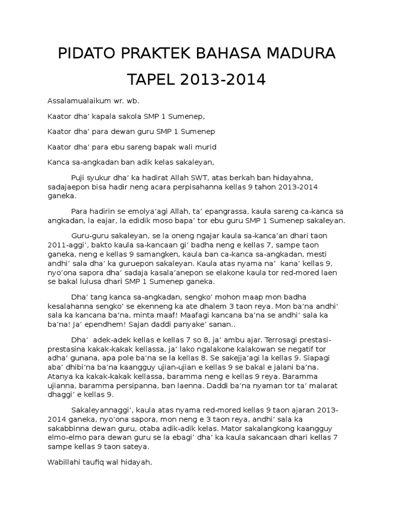 Contoh teks pidato bahasa madura. Teks Pidato Bahasa Madura Tentang Idul Adha Koleksi Undangan Desain Undangan Contoh Undangan Unik. Kami mengulas tentang contoh teks pidato bahasa madura tentang maulid nabi.