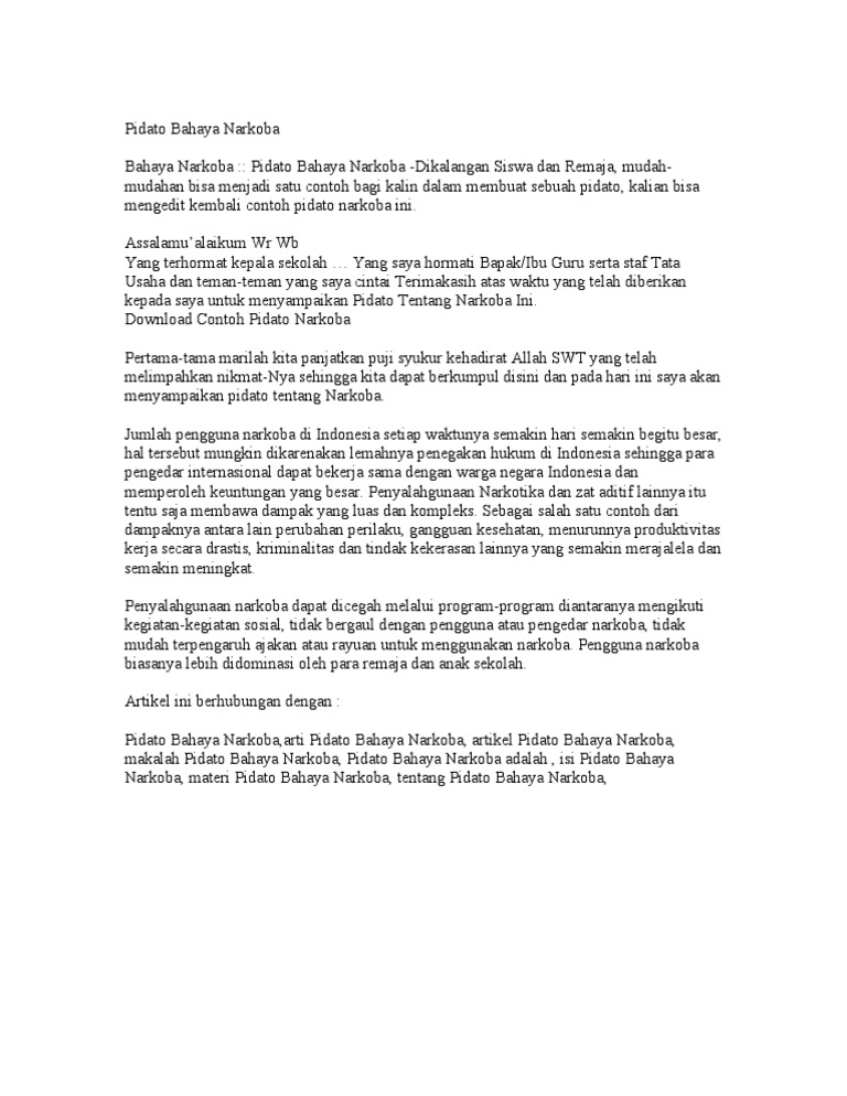 Narkoba merupakan permasalahan pelik di Indonesia bahkan dunia. Contoh pidato singkat narkoba bahaya narkoba untuk generasi muda. Contoh pidato bahasa jawa singkat tentang tausyiah agama.