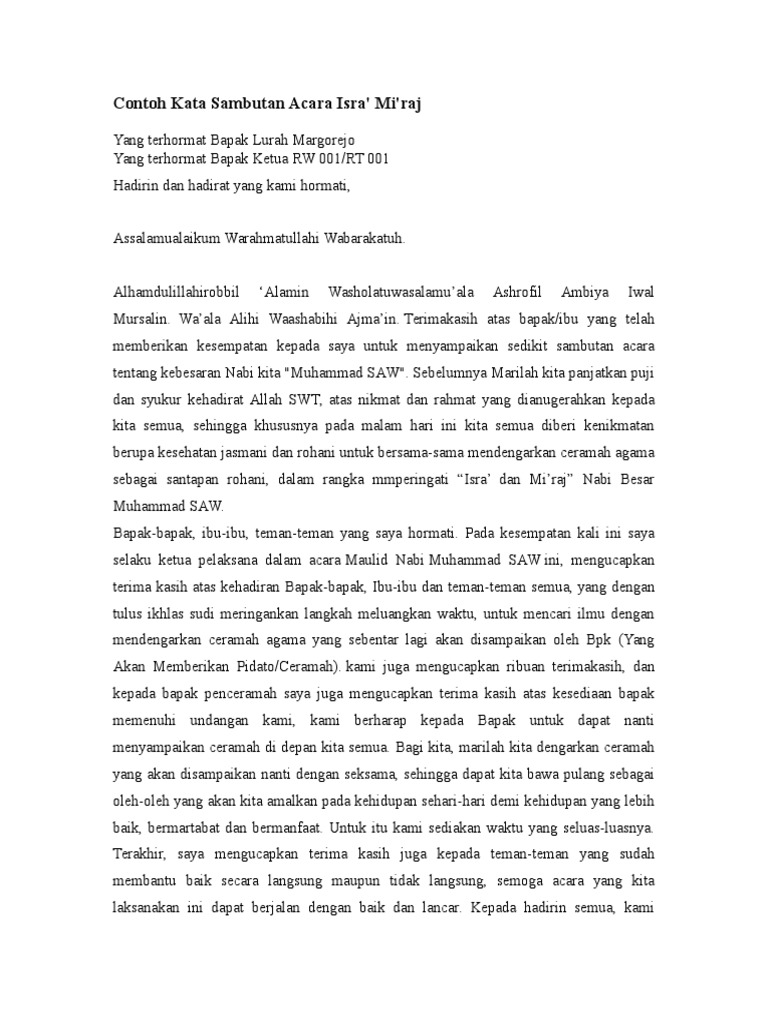 Contoh Pidato Kata Sambutan Ketua Panitia Isra Miraj Terbaru Kumpulan Referensi Teks Pidato