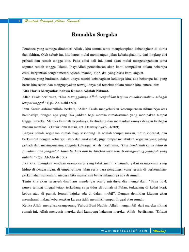 Hadits Tentang Rumahku Surgaku Sumber Ilmu