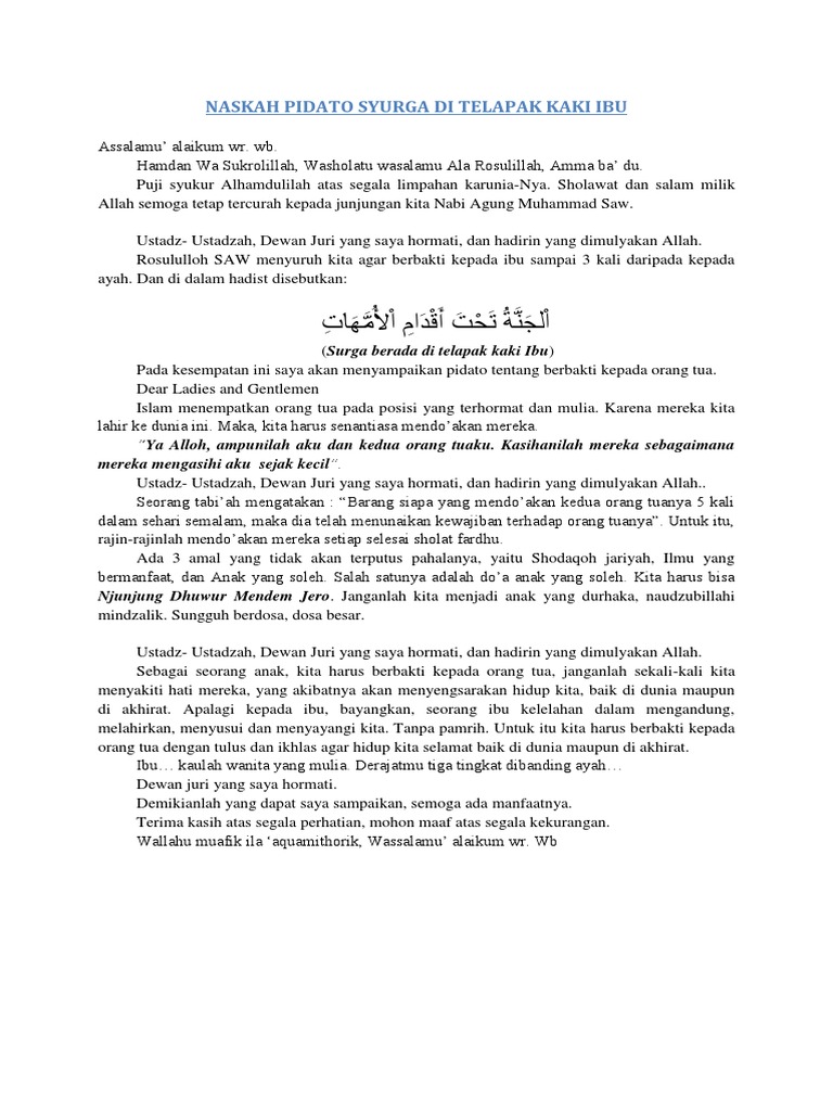 Naskah Pidato Syurga Di Telapak Kaki Ibu