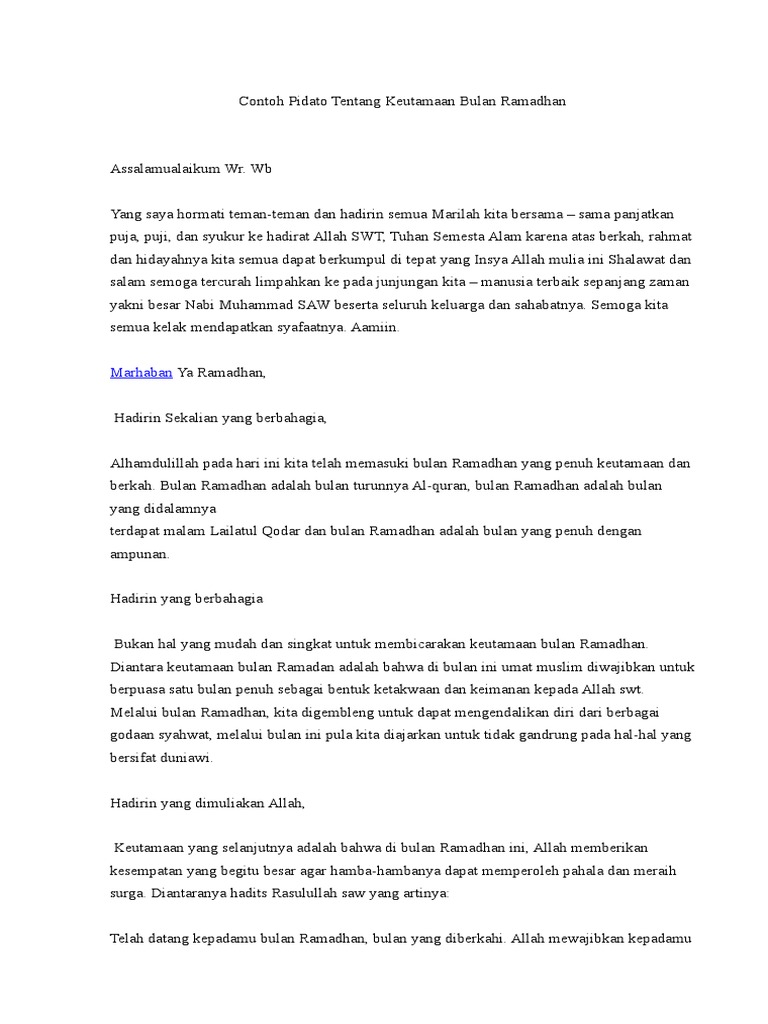 Doc Contoh Teks Pidato Lailatul Qadar Cania Selvia Academia Edu. Lah beberapa contoh Teks ceramah singkat berikut berisi kumpulan ceramah singkat tentang sabar syukur dan masih banyak lagi untuk mempersiapkan ceramah yang baikSecara keseluruhan ceramah khotbah dan sambutan merupakan salah satu bentuk dari pidato didepan umum. Dan juga diperingati sebagai malam diturunkannya Al Quran.