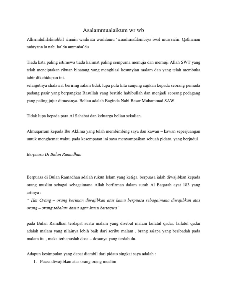 Doc Contoh Teks Pidato Lailatul Qadar Cania Selvia Academia Edu