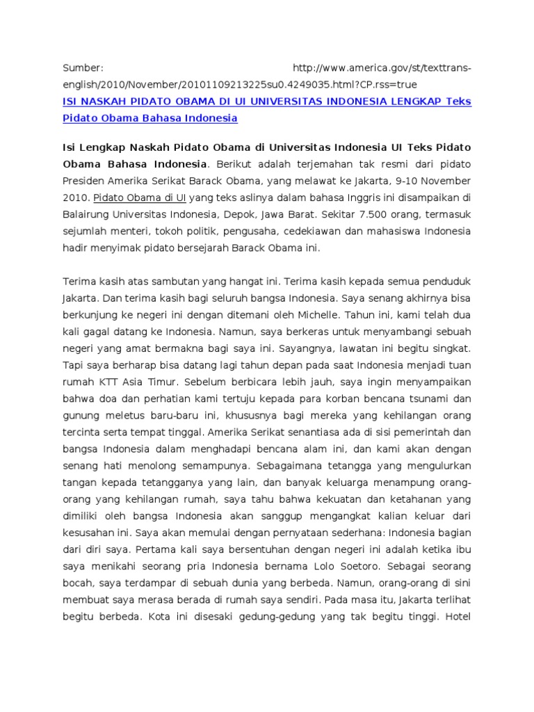 Isi Pidato Lengkap Obama Di Kampus Ui