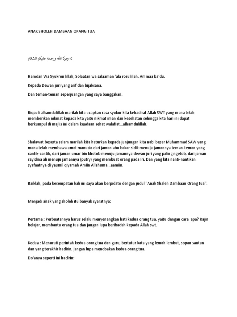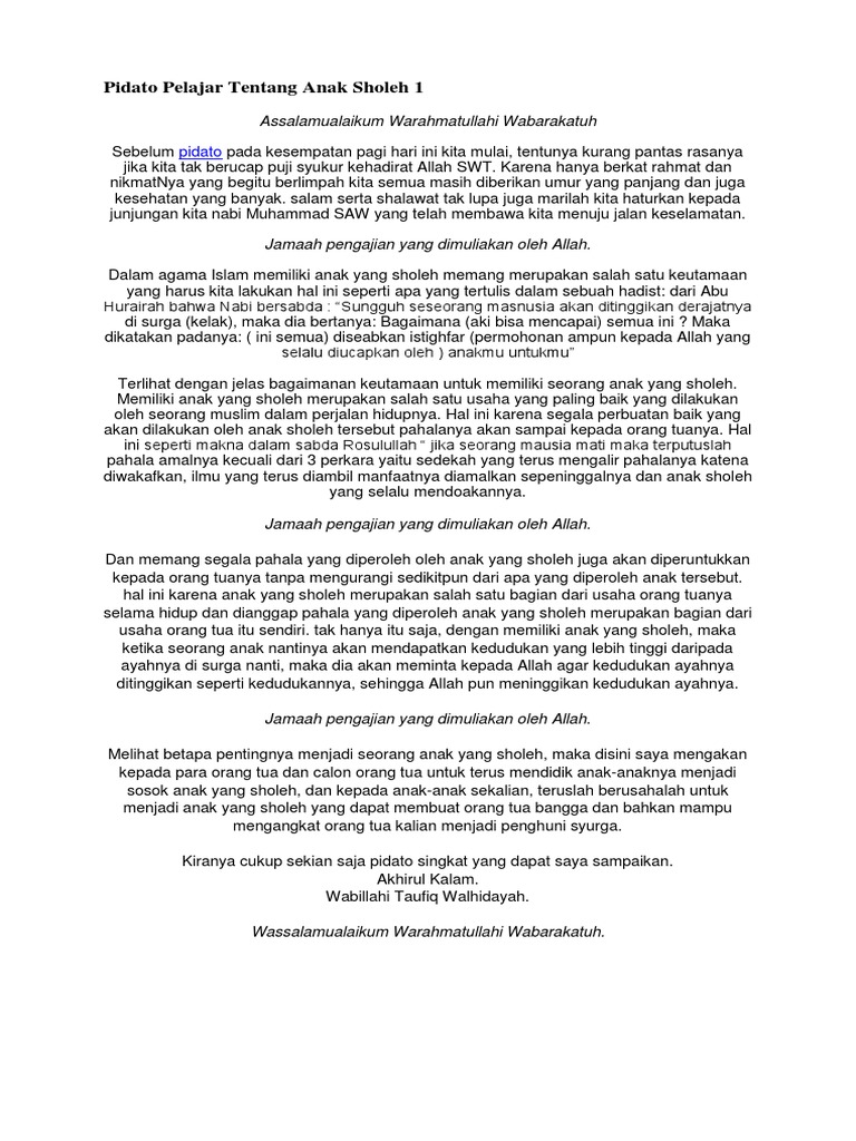 Menjadi anak yang sholeh. Pidato anak sholeh singkat lengkap terbaru. Tiada kata yang paling indah kecuali syukur kita kepada allah yang maha pengasih yang kasih nya tidak pernah pilih kasih.